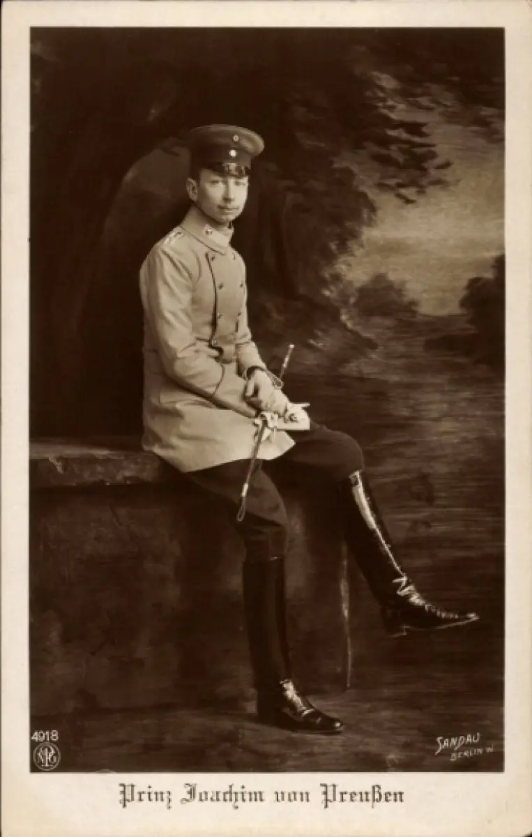 Ak Prinz Joachim von Preußen, Sitzportrait in Uniform, NPG 4918