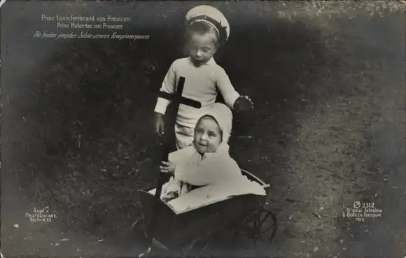 Ak Prinz Louis Ferdinand von Preußen, Prinz Hubertus, Kinderportrait, Handwagen