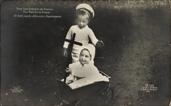 Ak Prinz Louis Ferdinand von Preußen, Prinz Hubertus, Kinderportrait, Handwagen