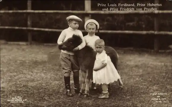 Ak Prinz Louis Ferdinand von Preußen, Prinz Hubertus, Prinz Friedrich, Pony