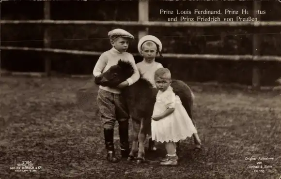 Ak Prinz Louis Ferdinand von Preußen, Prinz Hubertus, Prinz Friedrich, Pony