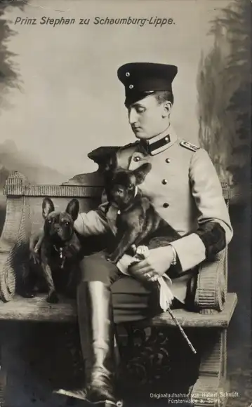 Ak Prinz Stephan zu Schaumburg Lippe, Portrait in Feldgrau, Bulldoggen