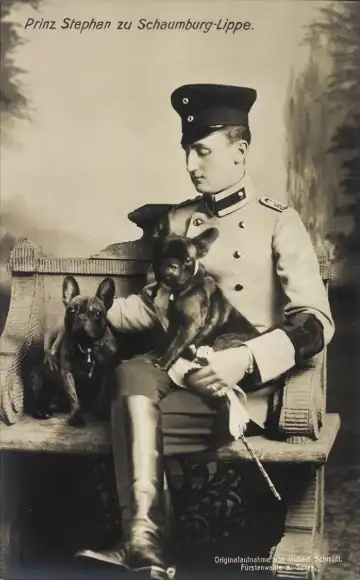 Ak Prinz Stephan zu Schaumburg Lippe in Feldgrau, Bulldoggen
