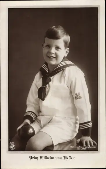 Ak Prinz Wilhelm von Hessen, Portrait als Junge, Exerzierkragen, Ball