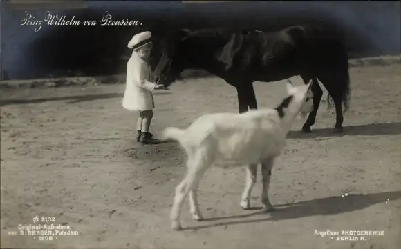 Ak Prinz Wilhelm von Preußen mit Pony und Ziege, PH 2132