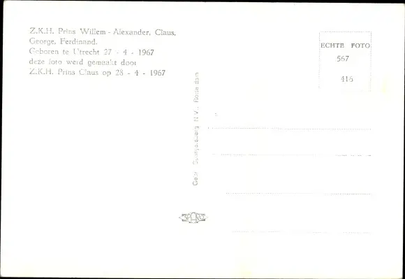 Ak Prinz Willem Alexander der Niederlande, Portrait als Baby