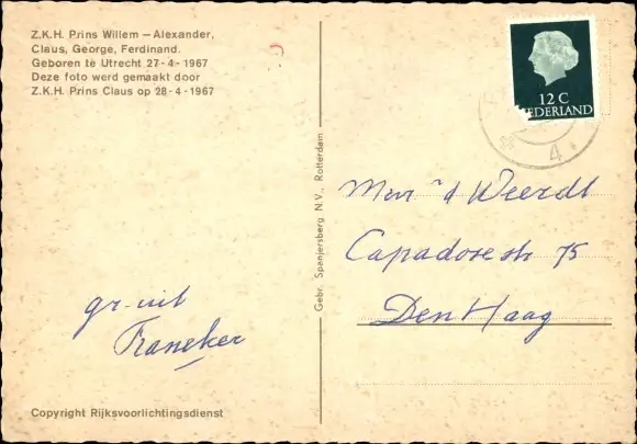 Ak Prinz Willem Alexander der Niederlande im Babybett 1967