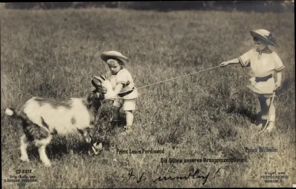 Ak Prinzen Louis Ferdinand und Wilhelm von Preußen mit Ziege