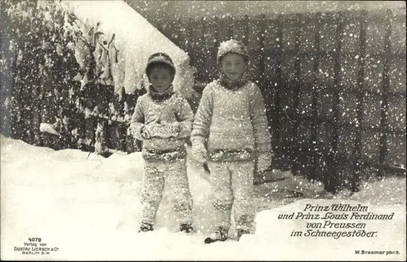 Ak Prinzen Wilhelm und Louis Ferdinand von Preußen im Schneegestöber
