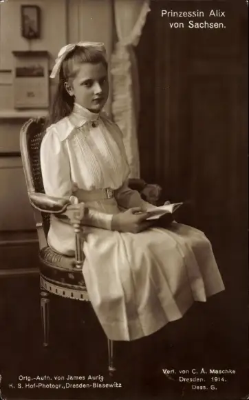 Ak Prinzessin Alix von Sachsen, Sitzportrait, Buch