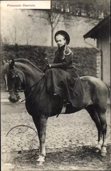 Ak Prinzessin Charlotte von Luxemburg, Portrait zu Pferde