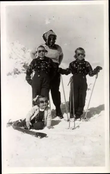 Ak Prinzessin Juliana mit Ihren Töchtern beim Skilaufen