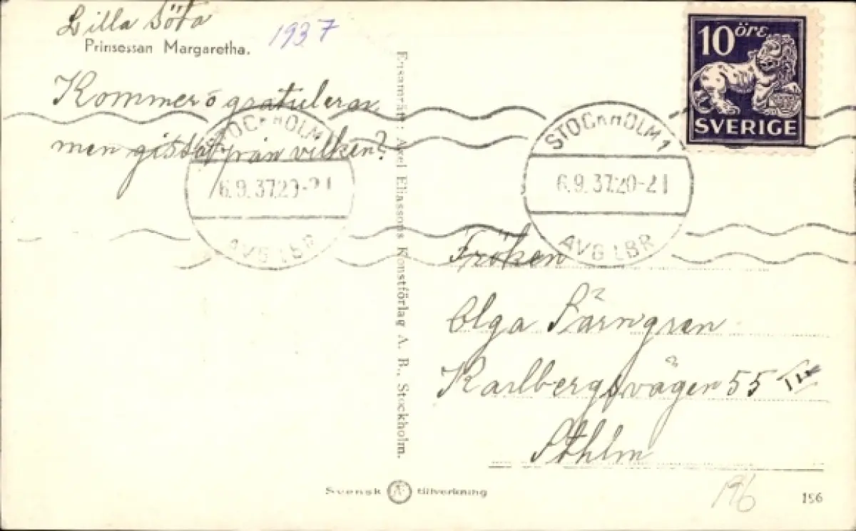 Zustand, siehe Scan, gelaufen, 1937 - ca 9 cm X 14 cm