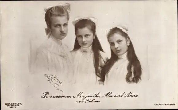 Ak Prinzessinnen Margarethe, Alix und Anna von Sachsen, Portrait