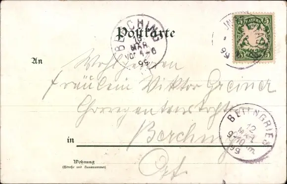 Zustand, siehe Scan, gelaufen, 1899 - ca 14 cm X 9 cm