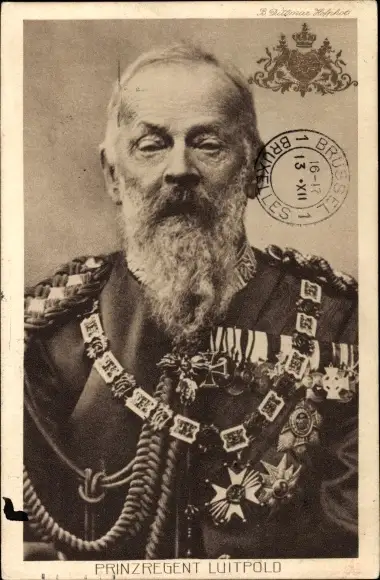 Ak Prinzregent Luitpold von Bayern, Portrait, in Uniform, Orden, Wappen
