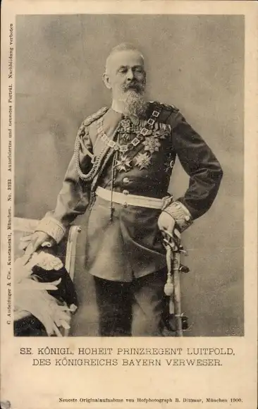 Ak Prinzregent Luitpold von Bayern, Standportrait in Uniform, Orden