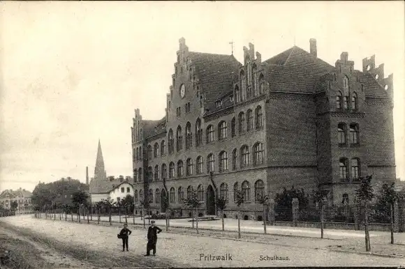 Ak Pritzwalk in der Prignitz, Straßenpartie an der Schule