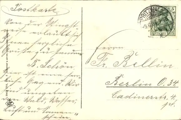 Zustand, siehe Scan, gelaufen, 1908 - ca 14 cm X 9 cm
