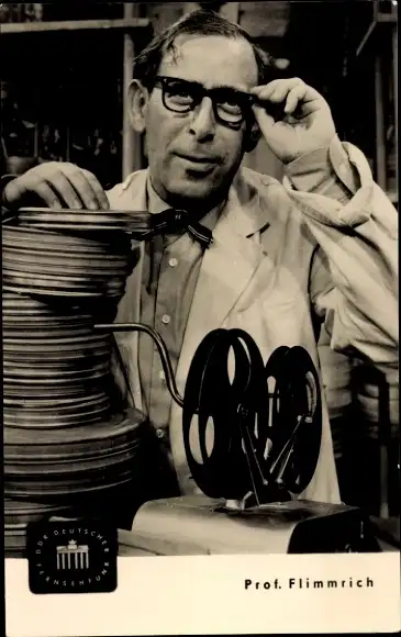 Ak Professor Flimmrich, Flimmerstunde, Walter E. Fuß, Filmrollen