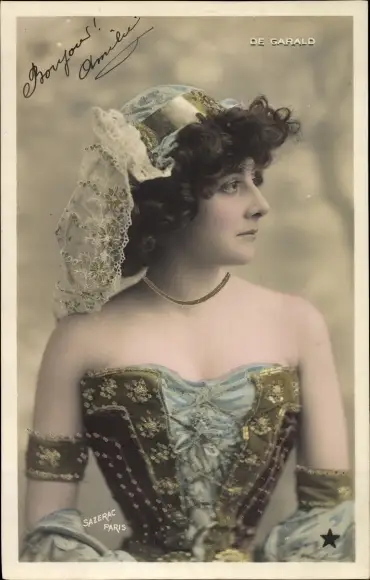 Ak Profilansicht einer Frau in Korsett, Kopfschmuck, Lockige Haare
