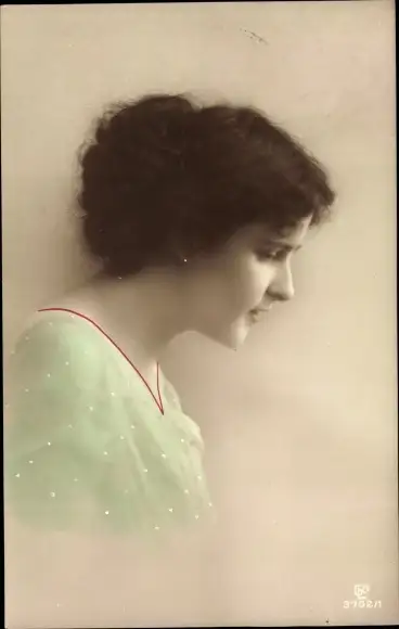 Ak Profilansicht einer jungen Frau, Grünes Kleid