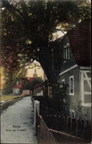 Ak Promnitz Riesa an der Elbe Sachsen, Straßenpartie im Ort