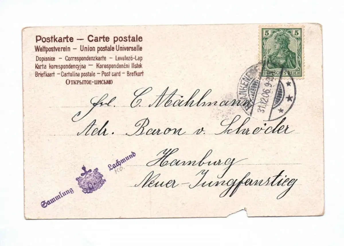 Erhaltung: leicht bestoßen und minimal unsauber, vorne rechts Einriss, alles weitere siehe bitte Scans.