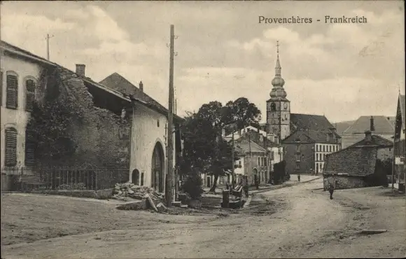 Ak Provenchères et Colroy Vosges, Straßenpartie, Kirche