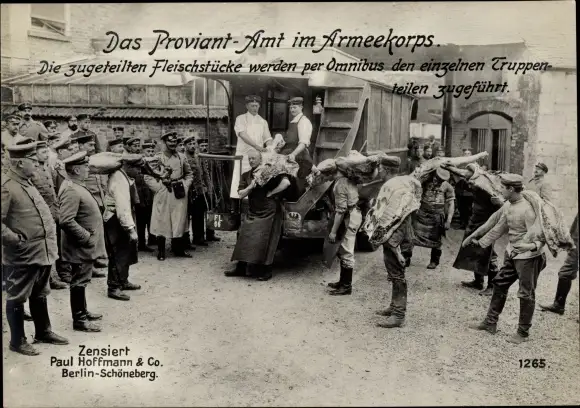 Ak Proviant-Amt im Armeekorps, Verteilung der Fleischstücke, I WK