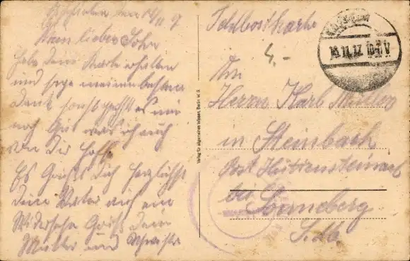 Zustand, siehe Scan, gelaufen, 1917 - ca 14 cm X 9 cm
