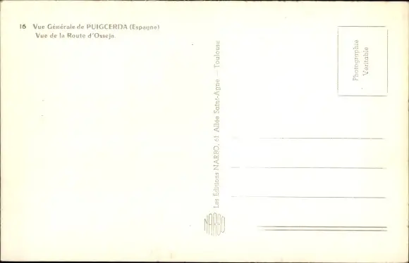 Ak Puigcerda Katalonien, Vue generale, vue de la route d'Osseja