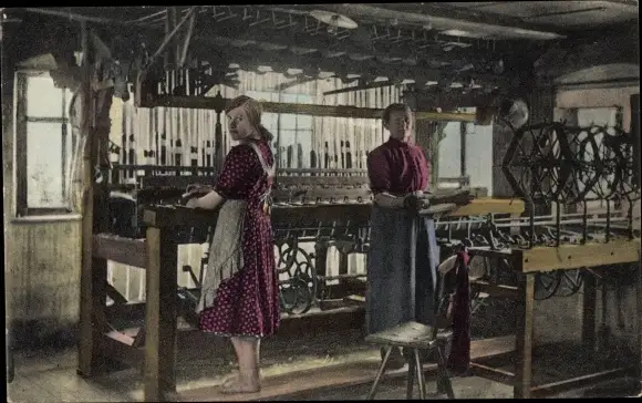 Ak Pulsnitz Sachsen, Am Webstuhl