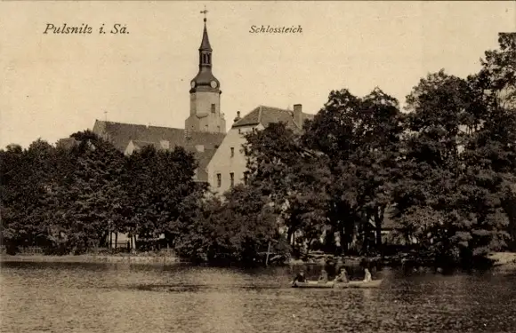 Ak Pulsnitz Sachsen, Schlossteich, Ruderboot