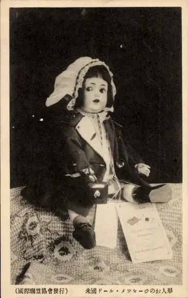 Ak Puppe, Spielzeug, Dokument, Tischdecke