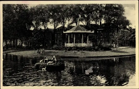 Ak Purmerend Nordholland, Nieuwe Gracht met Muziektent