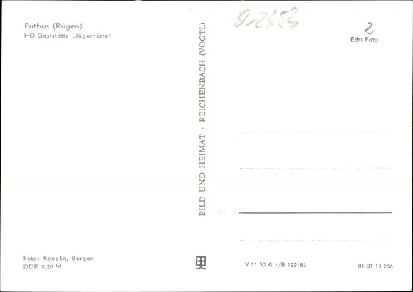 Ak Putbus auf der Insel Rügen, HO Gaststätte, Jägerhütte