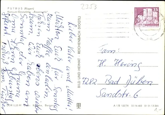Ak Putbus auf der Insel Rügen, Konsum-Gaststätte "Rosencafé"