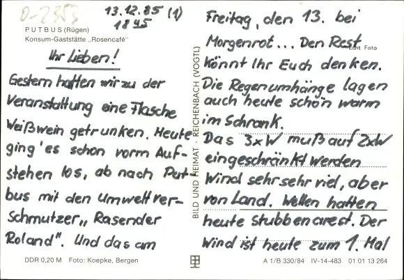 Ak Putbus auf der Insel Rügen, Konsumgaststätte Rosencafé