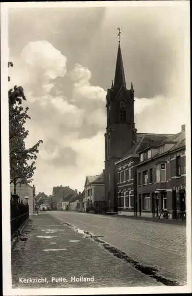 Ak Putten Gelderland Niederlande, Kerkzicht, Kirche, Straßenpartie