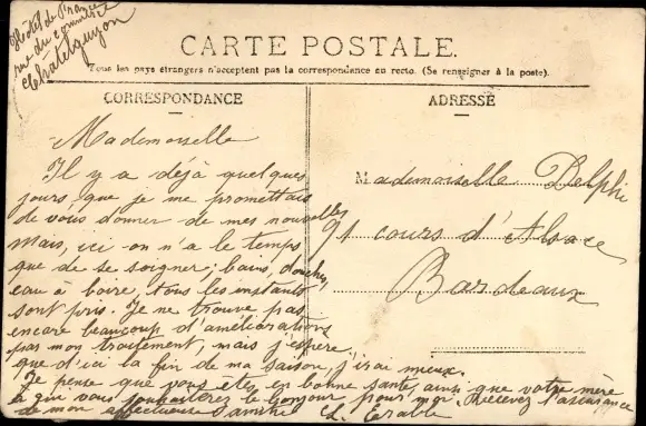 gelaufen 1908, Kleberest rechts unten, sonst guter Zustand