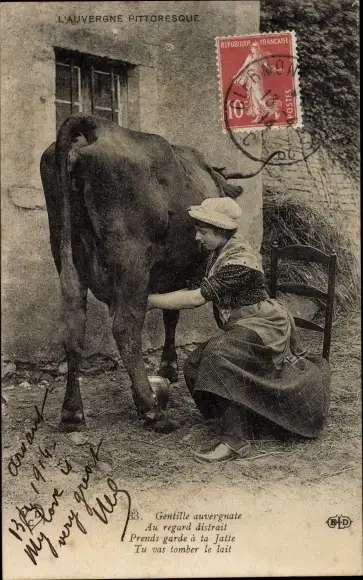 Ak Puy de Dôme, Types d'Auvergne, Frau beim Melken