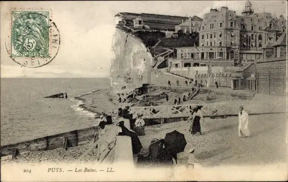 Ak Puys Seine Maritime, Les Bains, Strandpartie