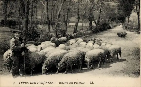 Ak Pyrénées, Hirte, Schafe, Schafherde