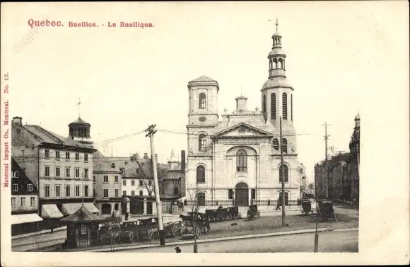 Ak Québec Kanada, Basilika, Kirche, Außenansicht, Pferdekutschen