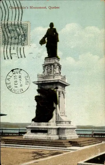 Ak Quebec Kanada, Denkmal Samuel De Champlain