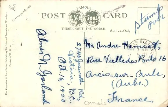 Zustand, siehe Scan, gelaufen, 1920 - ca 14 cm X 9 cm