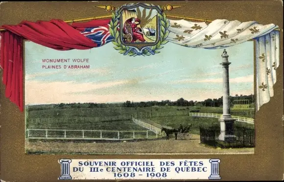 Ak Quebec Kanada, IIIe Centenaire 1608-1908, Monument Wolfe