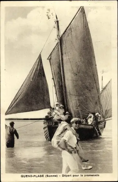 Ak Quend Plage Somme, Segelboot am Strand, Passagiere