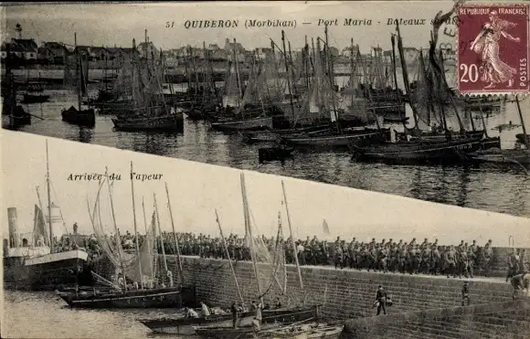 Ak Quiberon Morbihan, Hafenansicht, Boote, Ankunft des Dampfers